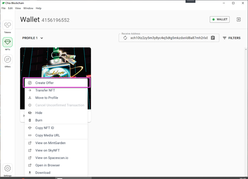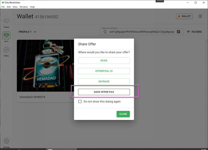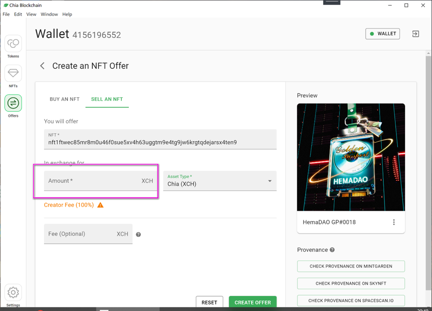 7、在chia官方钱包创建保存报价文件