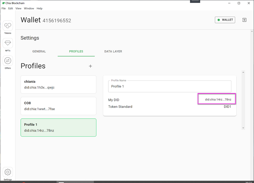 DID格式为“did:chia:******************************************************”