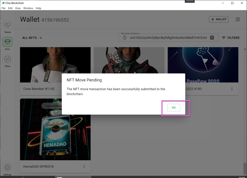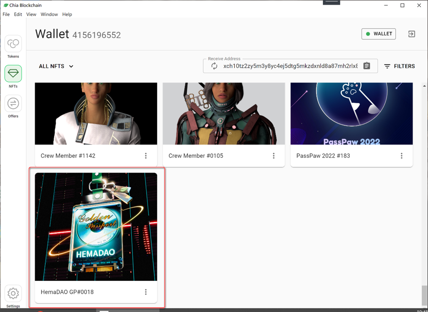 7.1在chia官方钱包找到HemaDAO护照NFT,点击右下角。