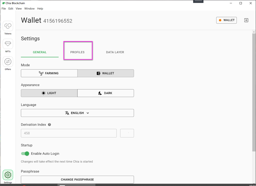 4.1打开chia官方钱包。点击“设置”