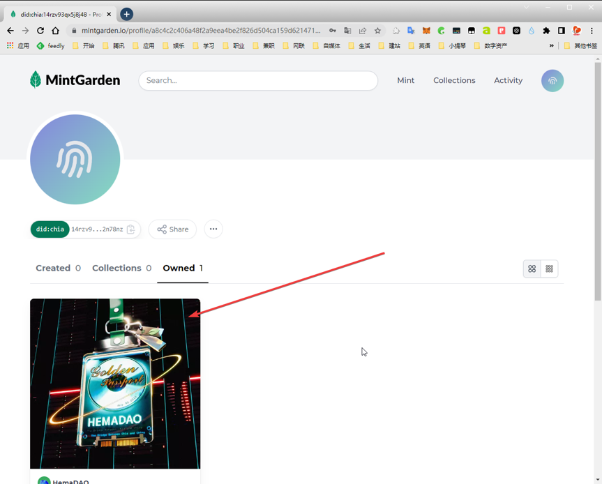 11、在Mintgarden网站打开打开DID集,查看HemaDAO NFT是否在里面。