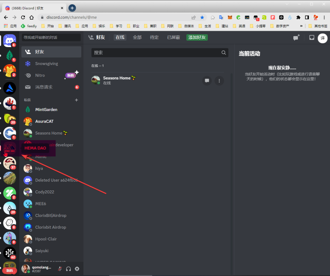 进入Discord 查看是否加入HemaDAO Discord