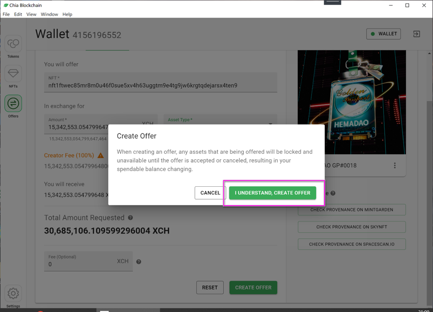 7.5 点击“I UNDERSTAND,CREATE OFFER”