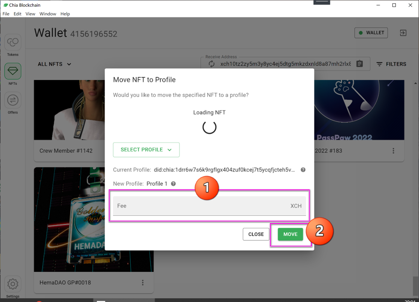 5、将NFT移至刚才新建的“Profile 1”里