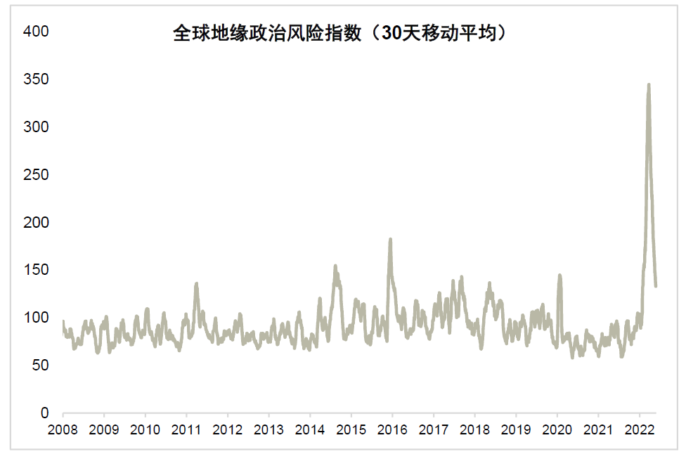 图表5:全球地缘风险今年初大幅上升,但对极端情形的担忧已有减弱