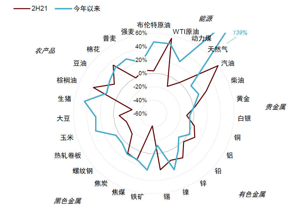 图表1:大宗商品价格增速:2H21与今年以来(截至2022年5月25日)