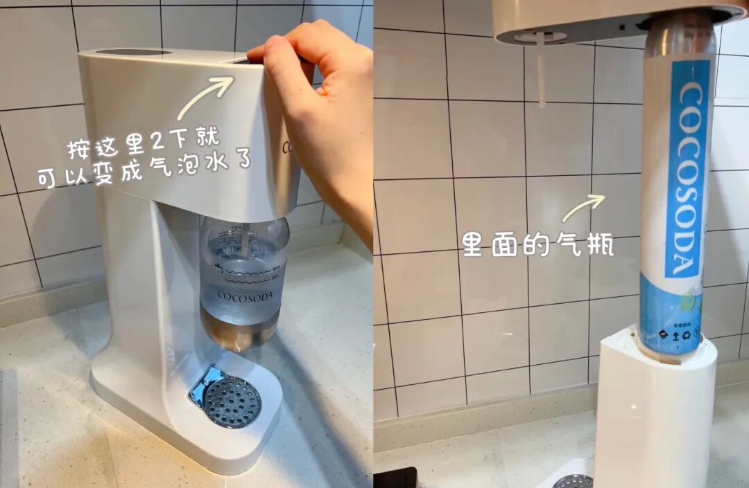如果是平时很爱喝气泡水的同学,推荐可以考虑入一个气泡水机。操作非常方便,按久一点气儿就多点,按短一点气儿就少一些,一切尽在掌握,随时随刻给自己做汽水喝,还可以放各种不同的果汁茶饮之类的来打气。