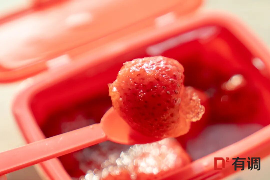 怕整颗水果太瓷实不好咬的,也可以买这种果泥小冰块,口感更沙一些,当夏天的解闷小零食吃很不错。