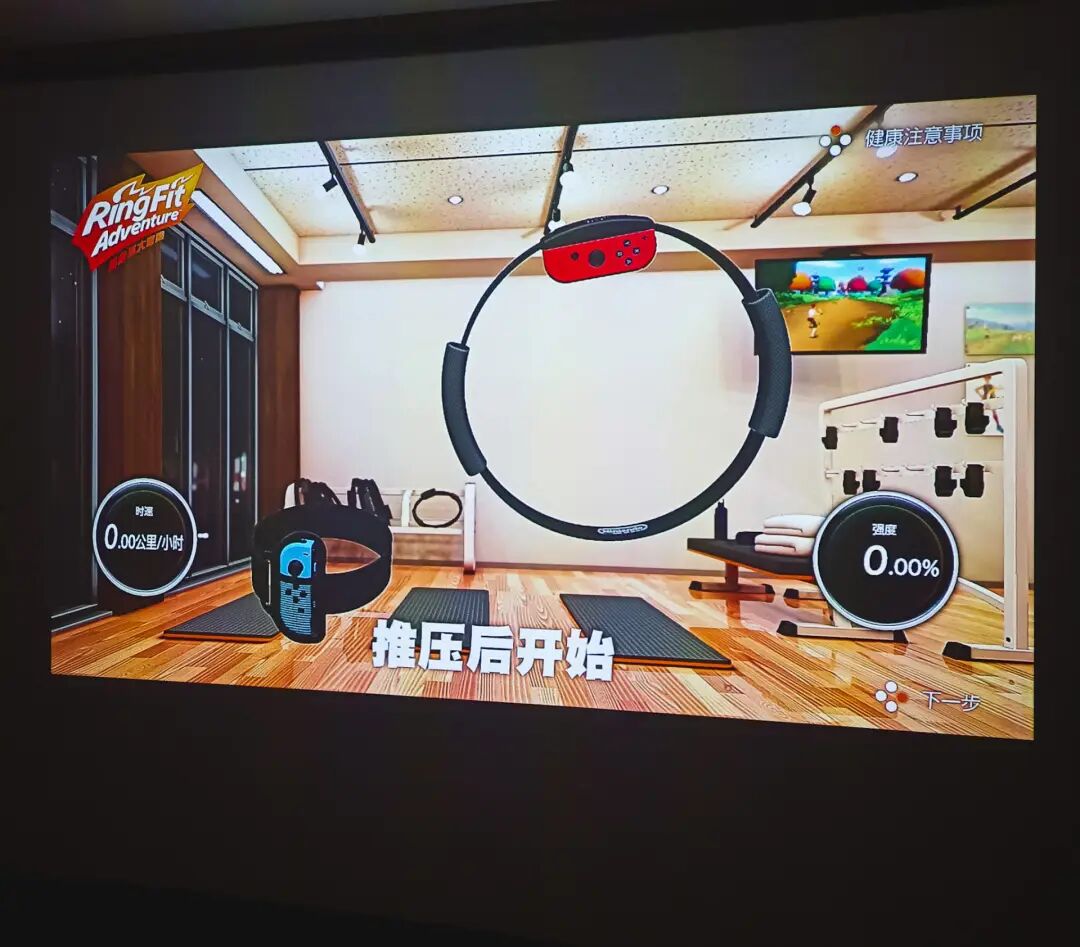 一开始是在客厅折腾显示设备。我没有在客厅看电视的需求,所以客厅一直是一面大白墙,配合最普通的极米LED投影+健身环,在白墙上投出140寸画面,沉浸感不错。但是其实显示效果啥的其实都是浮云,最后还是败给了自己的惰性,算了算半年加起来还没开过10次。。。堕拉攻就打了四五次的样子。。。