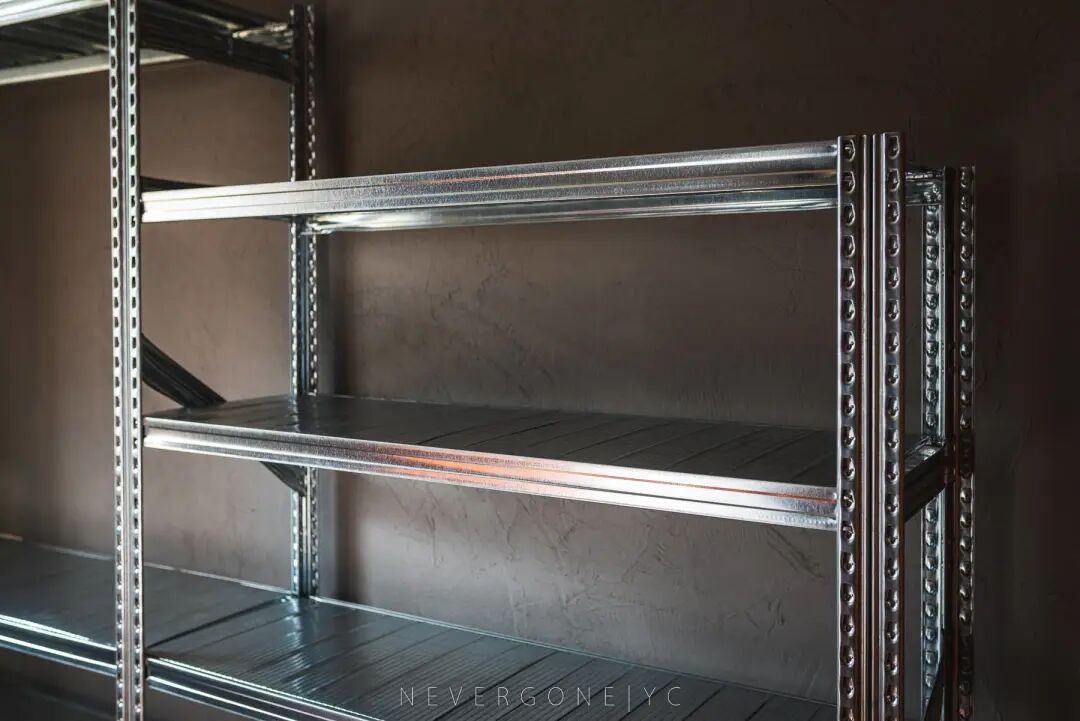 接下来就是打造背景墙了,我搜寻了各个平台,想找一个比较工业风的货架来摆靴子,最后敲定了意大利Metalsistem的衣架+货架高低组合,尺寸是高1972mm*长1280mm*深400mm+高1576*长1280*深400,个人感觉这样故意营造高低落差感会更好看点。