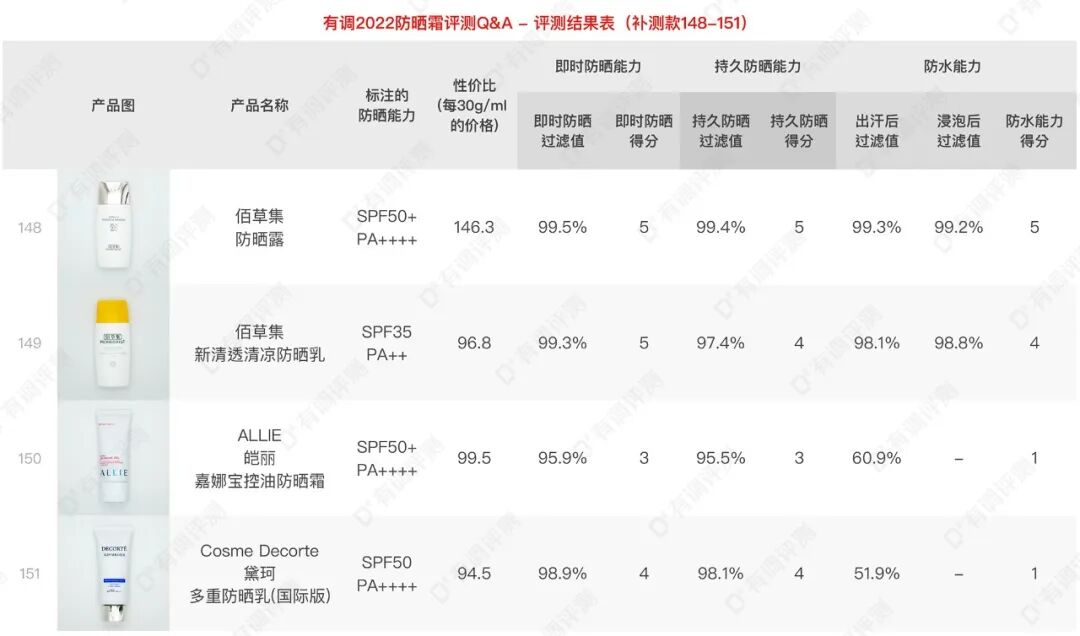 由于疫情物流不畅,直到发了防晒霜报告之后,我们才收到了最后4款,补测结果如下:
