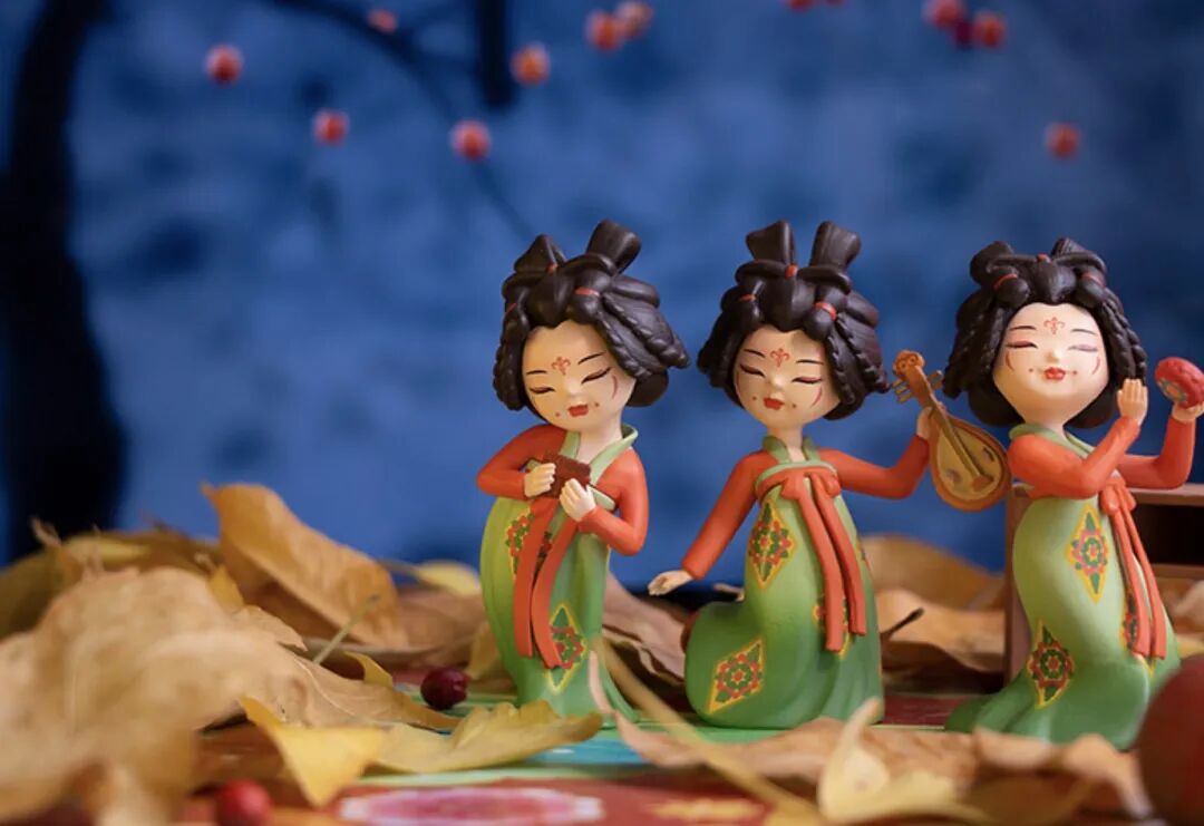 唐宫夜宴现在已经成为了一个国潮IP,河南博物院就以此为灵感,推出了唐宫夜宴的手办,还原了院藏文物“会彩陶坐姿乐女俑”8位仕女小姐姐演奏的形象。