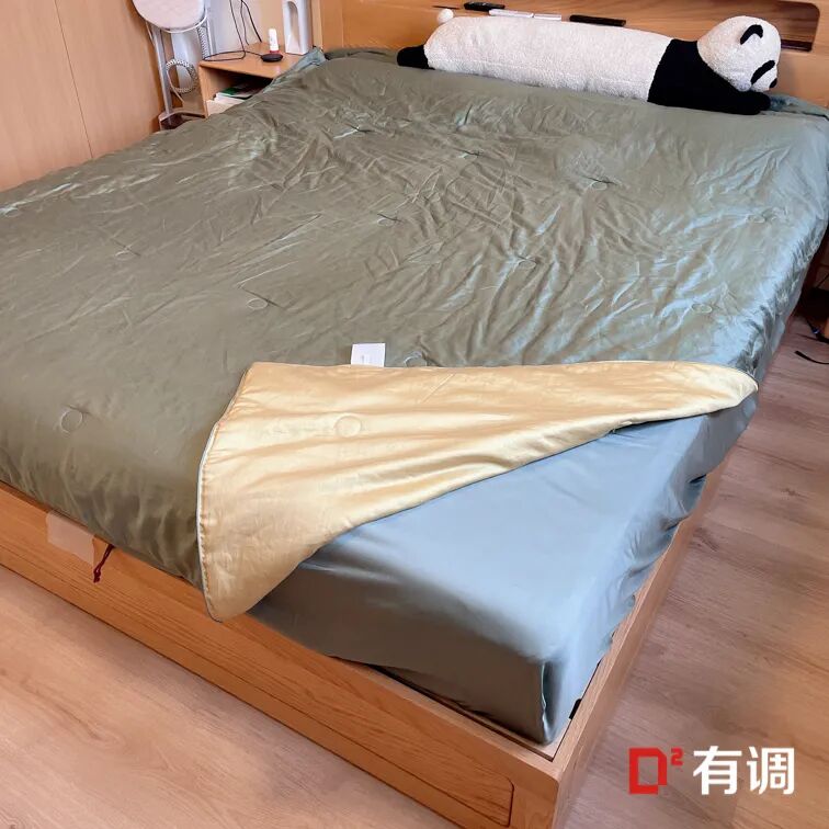 这款有大豆纤维的夏凉被四件套,买的时候纯粹是因为便宜,并且和床笠枕套夏凉被是一整套的。现在很多都是单卖一个夏凉,会跟自己原有的床品混搭不太好看。但拿到手后很喜欢,睡了一晚后马上就又下单了另一套颜色。透气性很高,重量也很轻,特别亲肤,盖着睡觉几乎无感。除了非常容易起皱,真的是很完美符合我心目中的夏凉被。