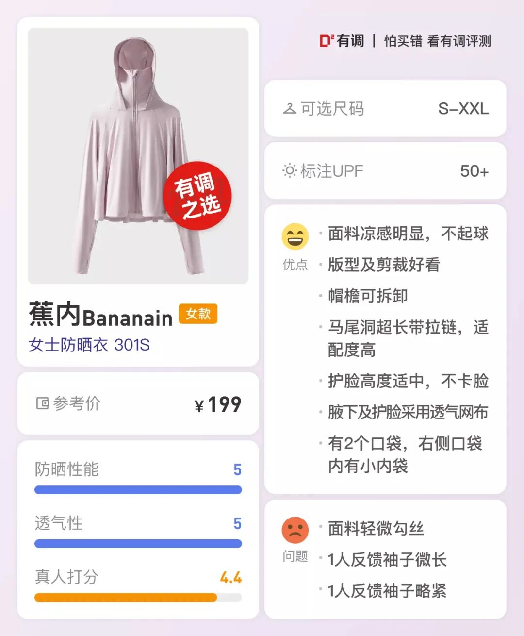 蕉内凉皮301S女士防晒衣 ¥199
