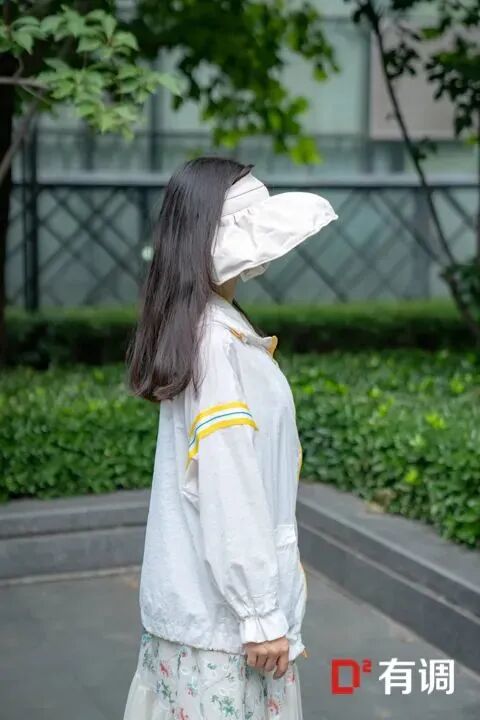 oh!Sunny的这顶贝壳防晒帽帽檐很长也比较宽,且帽檐材质比较硬挺,能够遮到上半张脸和耳朵,后脖子及头顶就用防晒衣的帽子遮一下,透气还不压头发;发箍弧度做的很好,不会夹头,长时间佩戴比较舒服。