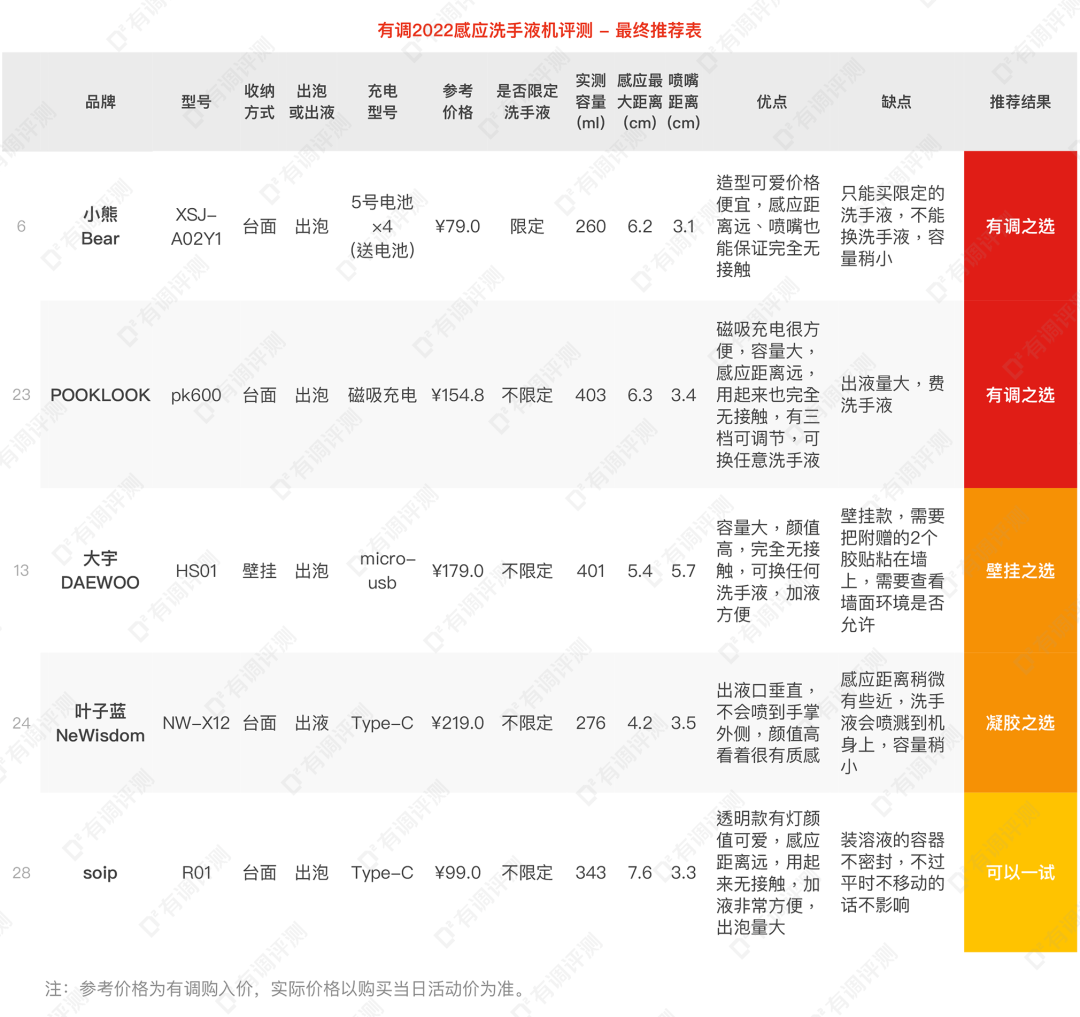 本次选取了知名小家电品牌、爆款热销以及造型可爱的28个品牌共31款感应洗手液机,包含了台面、壁挂款式,以及出液和出泡款式。