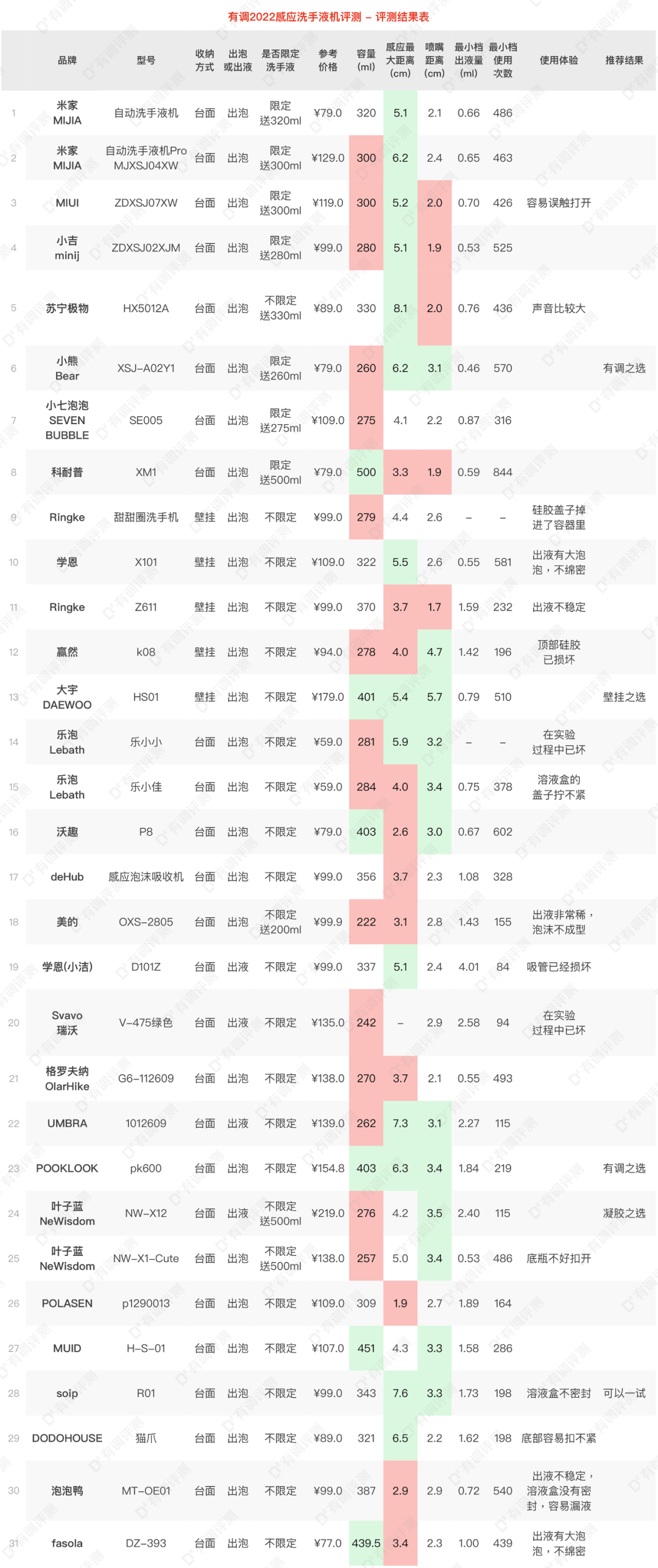 容量大(全场top2),感应范围大,无接触出泡,有三个档位可调;
