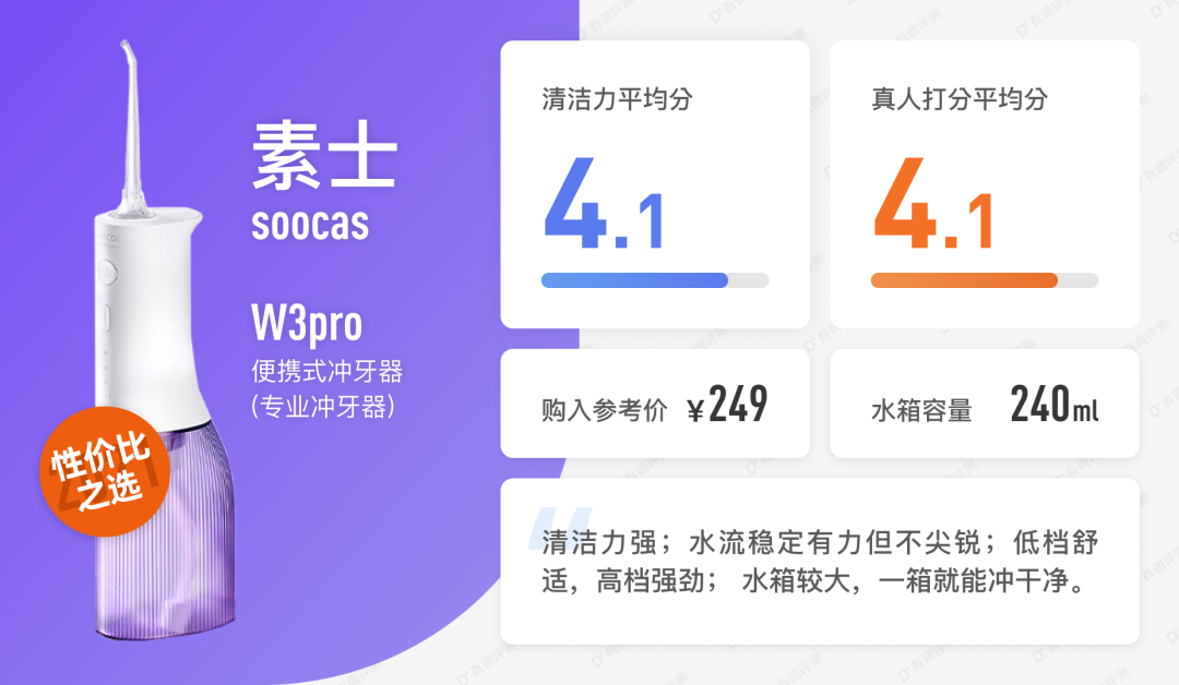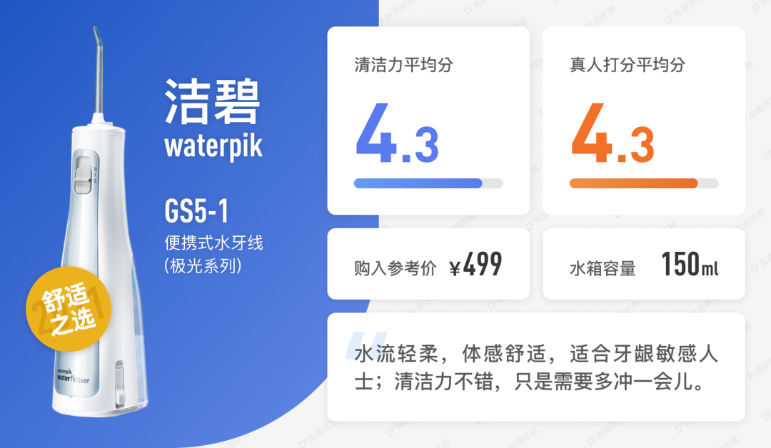雪姨:舒客这款就是没啥亮点,也没啥槽点,整体用下来很正常,无功无过。结合它的价钱,真的是新手入门可以尝试一下的了,一旦发现自己还是不喜欢水牙线(我身边确实有人无法接受水牙线的),也不会亏太多。