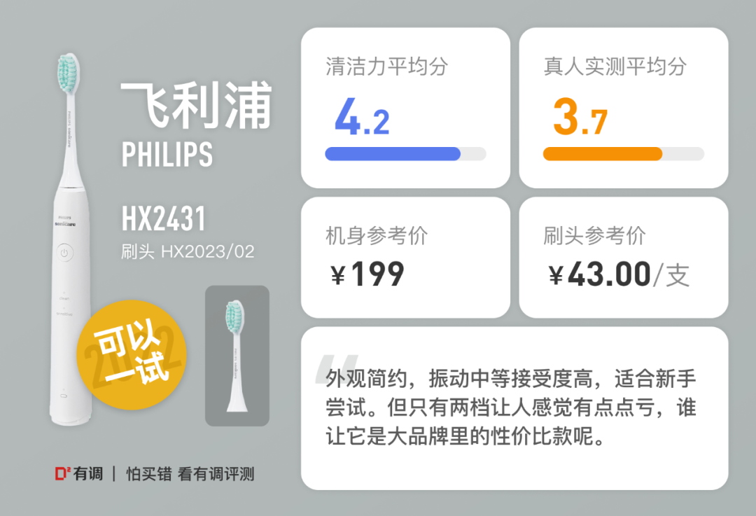 雪姨:这个牙刷拿在手里给我一种“很轻”的感觉,我可能会觉得轻飘飘的东西质感不好吧。刷起来没啥大毛病,就是比较温柔,不适合我这种常年飞利浦6系的人,适合电动牙刷入门者,或者喜欢轻柔力度慢慢清洁的朋友。