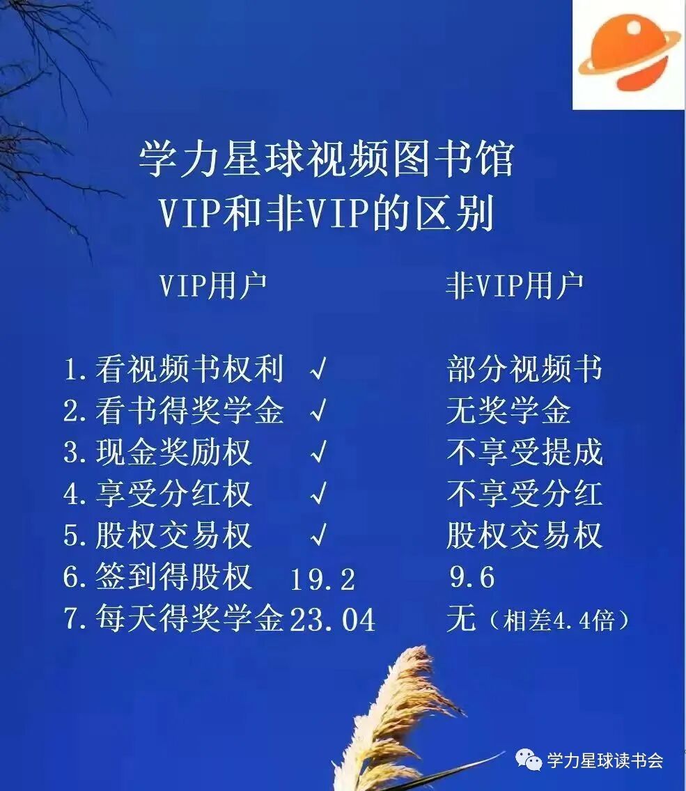 学力星球消费198VIP学习年卡,就可以获得股东权限。比普通用户多4.4倍领取平台股权凭证,每月15号可凭借积累的学力分参与平台70%利润分配,月月分,终身分,推广还可以获得现金收益。