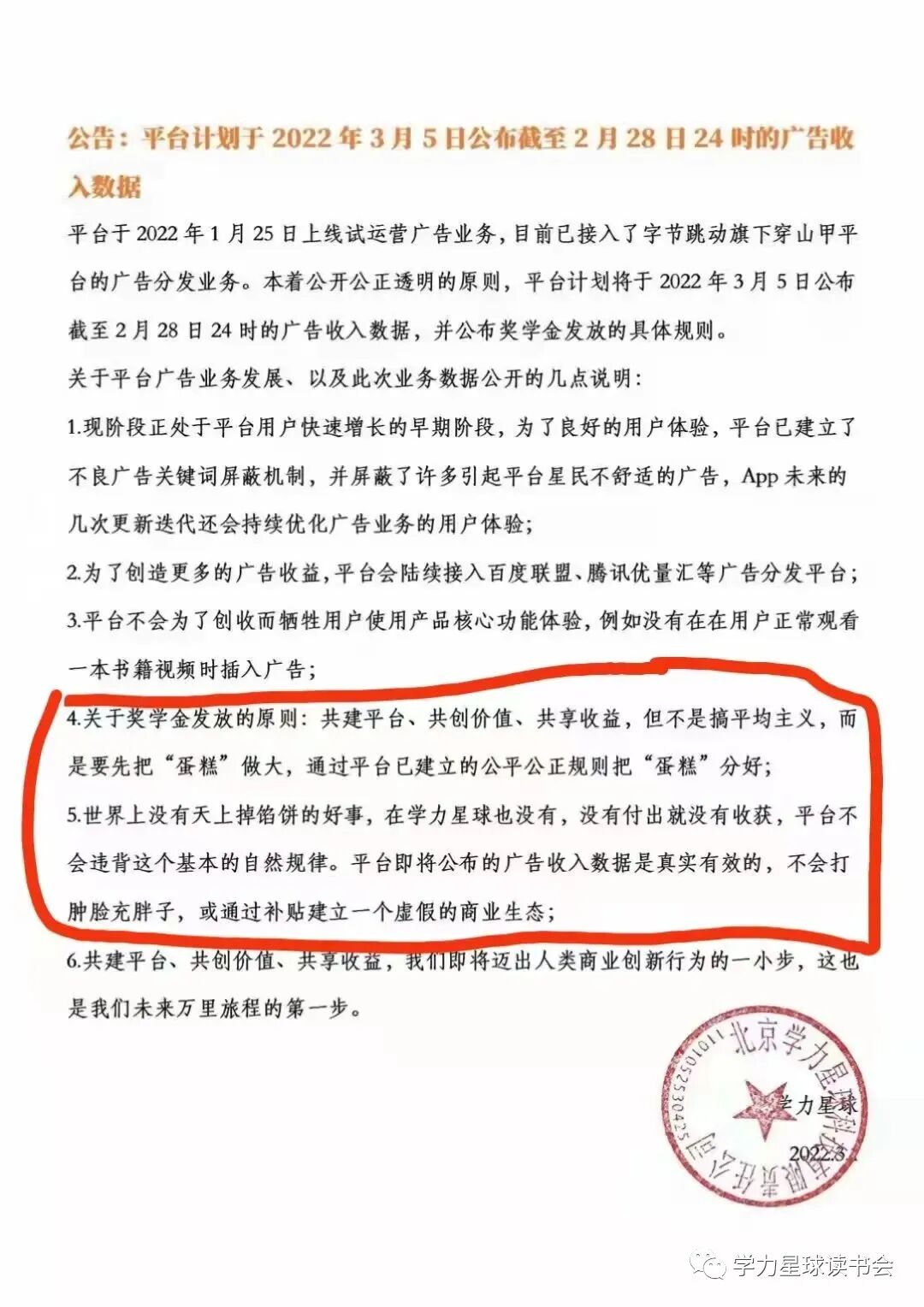 用任博最真诚的一句话说:学力星球不会让任何一个共建者受伤害。