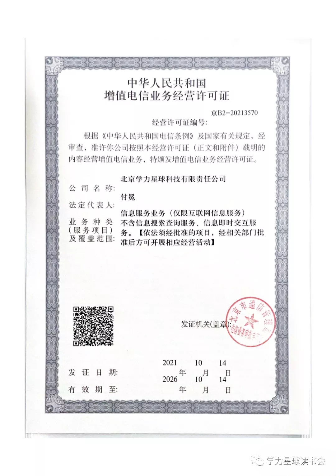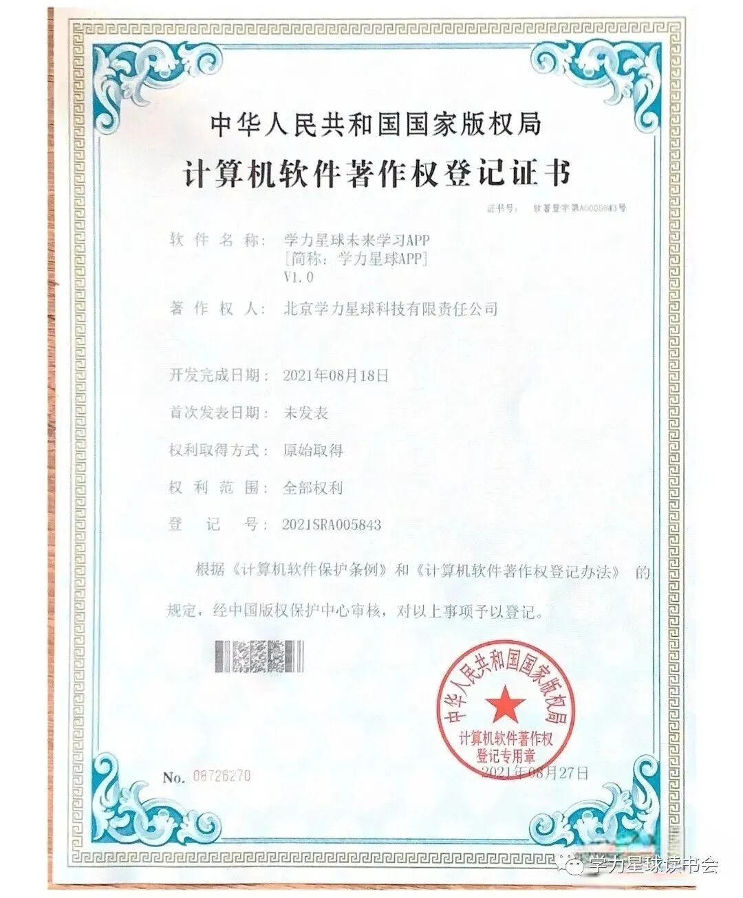 学力星球已获得软件著作证书,增值电信业务经营许可证。
