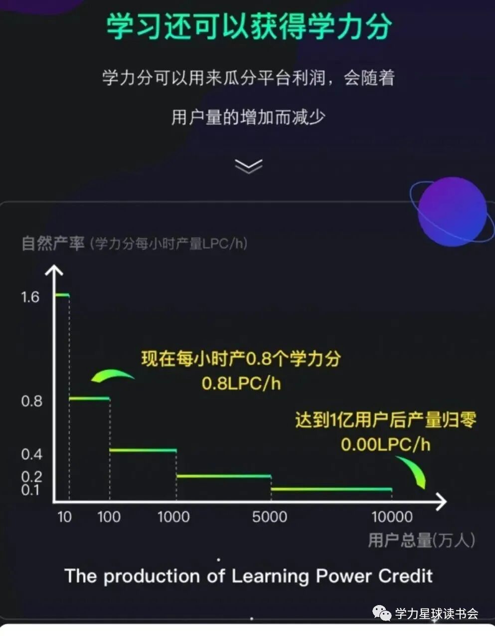 所以越早签到获得的学力分越多,获得的学力分越多,获得的收益也就越多。随着用户的增长,学力分不断减半,会越来越稀缺。