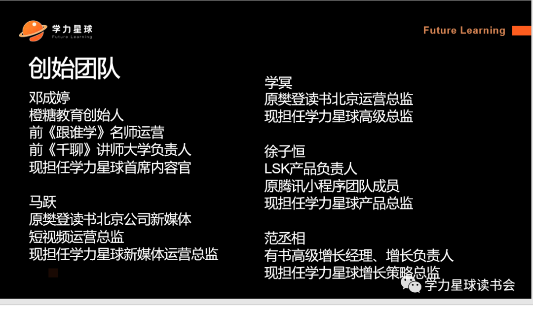 学力星球的讲书人都是资深讲师,来自于福布斯精英,喜马拉雅,樊登,孔子学院,各大平台创始人等知名讲书人。他们都来源于学力星球创始人任博深耕行业6年积累的人脉和圈层。