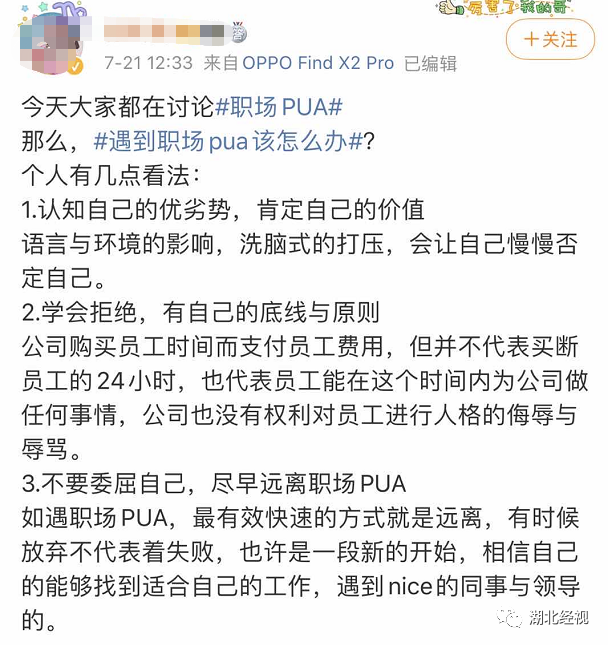 明星可以把这些公开,寻求大众声援。可普通人遇上职场PUA,真是没地方说理。