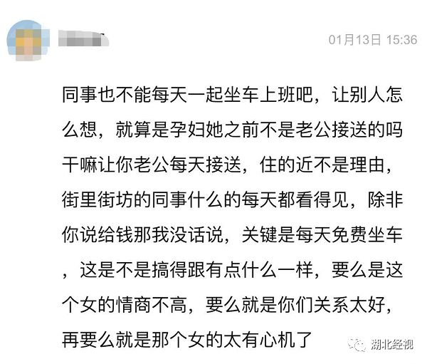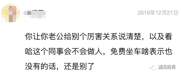 有一位男网友发帖求助,自己每天开车载着女同事上下班,会不会出事?他说,女同事是公司前辈,住得比较顺路,让其天天上下班带她一程,对于有家室的他来说,着实造成了不小的困扰。送吧,同事眼光异样,不送吧,怕女同事不高兴。看到这本圈主断定他老婆还不知道吧!按剧情一般都是一场“腥风血雨”。 作为老婆不让老公送,又不好拒绝,同事天天抬头不见低头见,不好意思。而且有的老公可能还会觉得你怎么不信任我呢!如果有其他几个男女同事一起可以接受,单独的接送女同事绝对不会接受,因为这事我跟男票吵过。