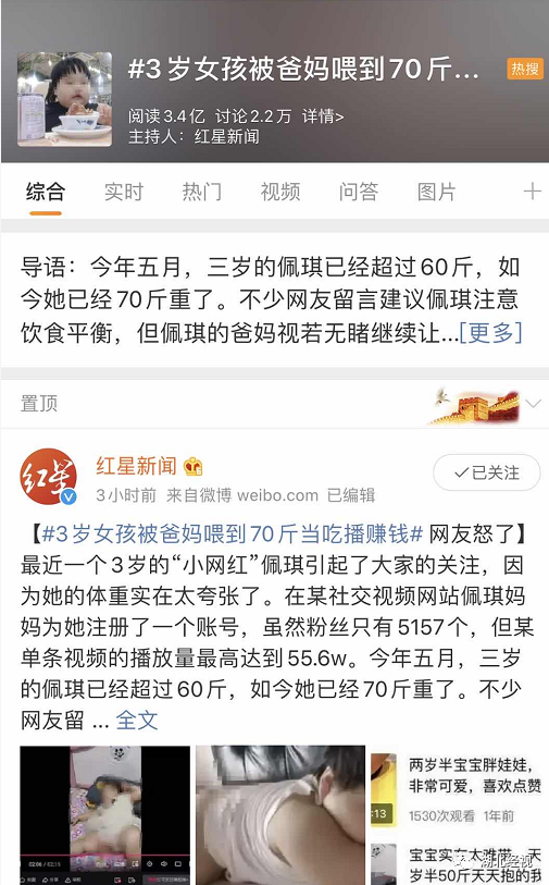 年仅3岁的“小网红”佩琪因其与年纪极不匹配的超额体重引起了舆论广泛关注。