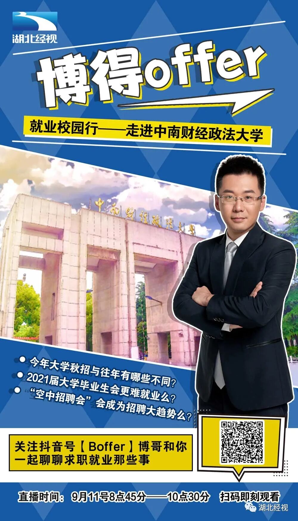 1、扫描二维码,关注”湖北经视“微信公众号