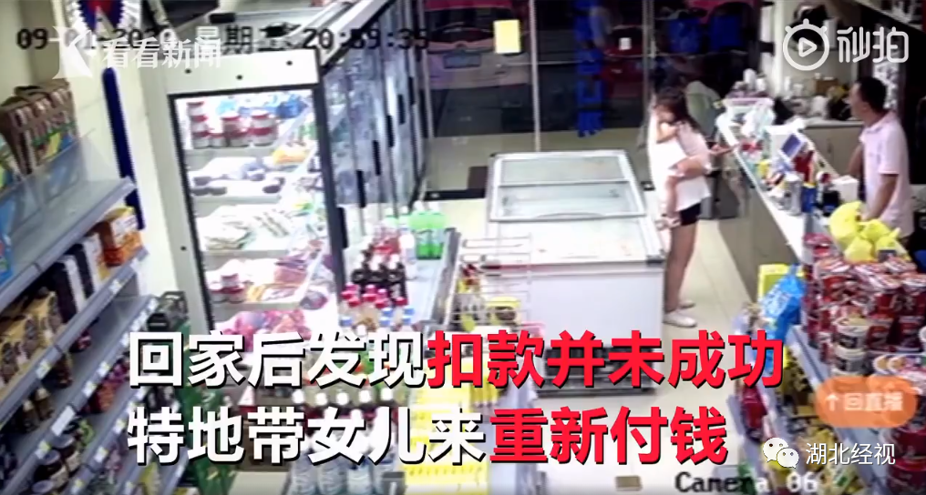 最近,浙江绍兴的一对母女在超市买了255元的商品后,回家发现支付宝上扣款并未成功,于是妈妈又带着女儿又回到店里重新付款,店主很是感激。
