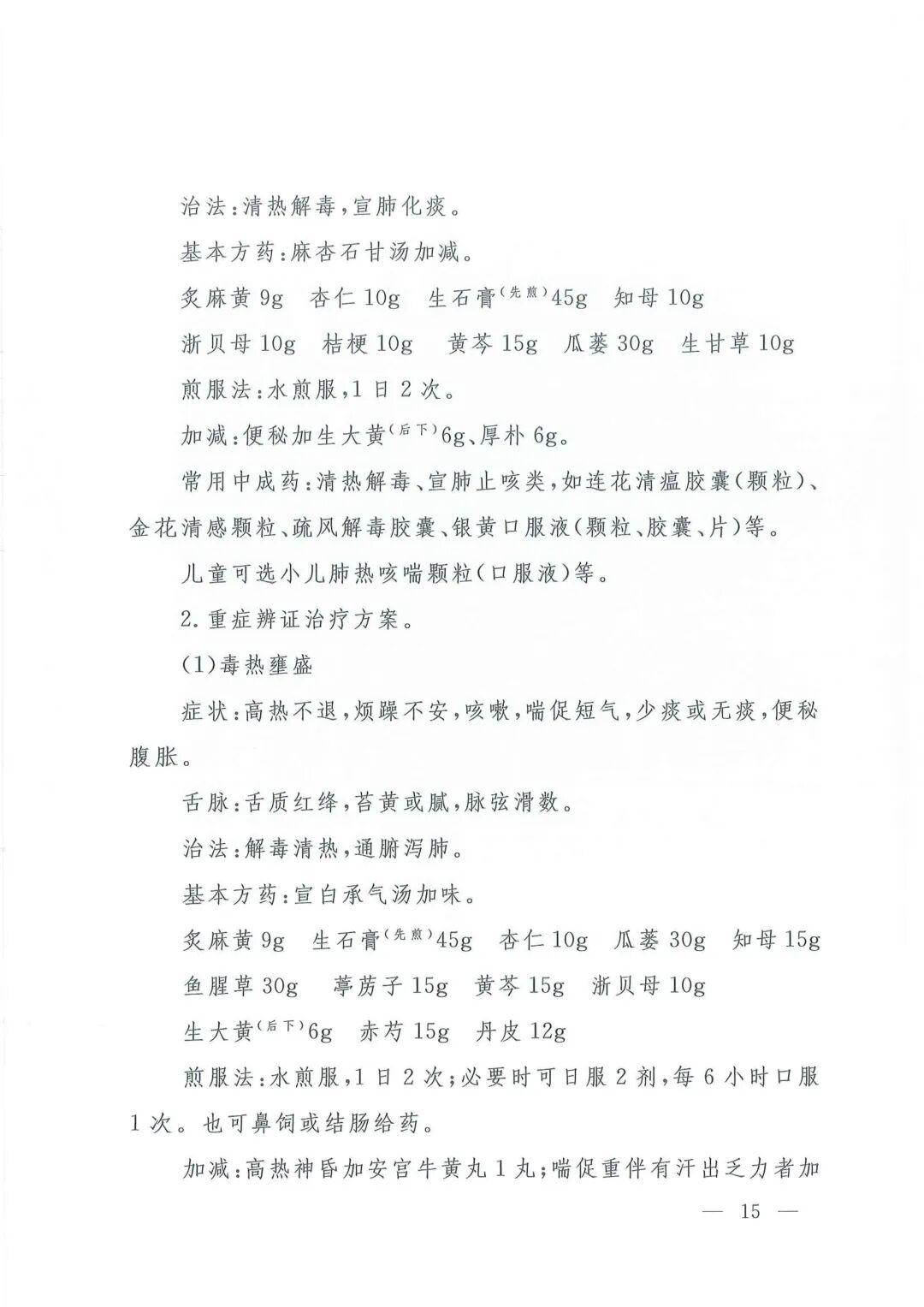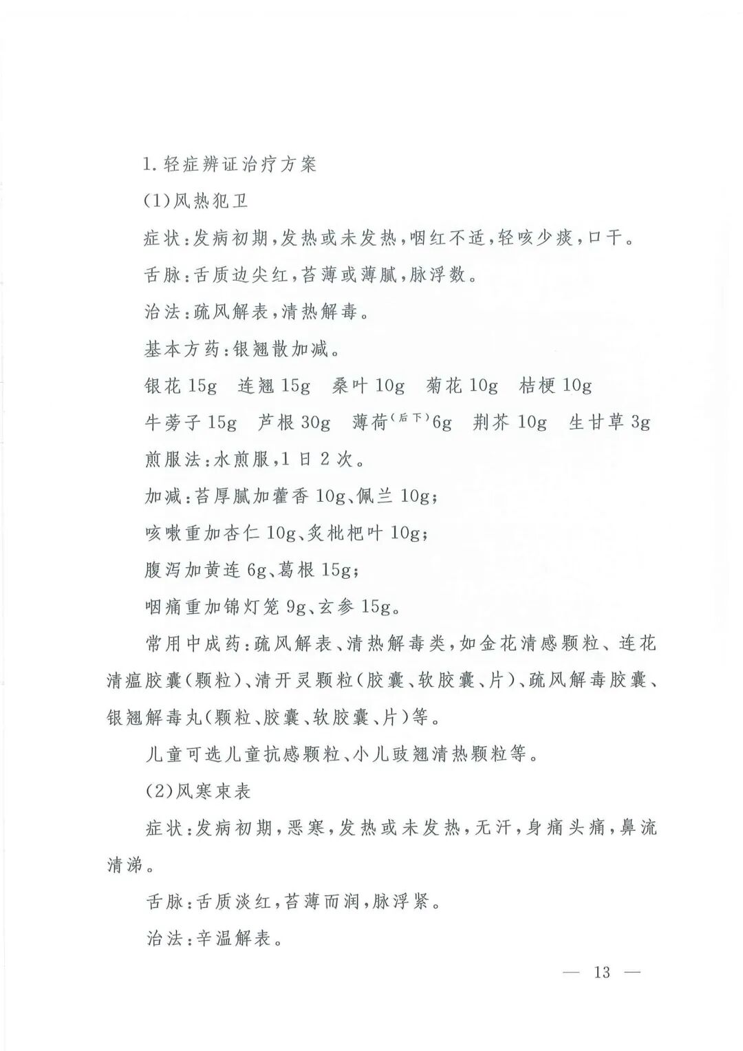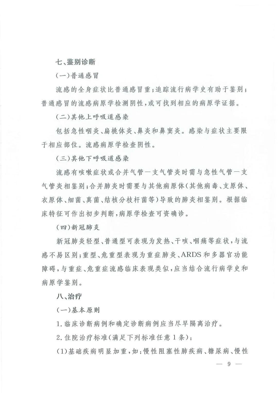 流行性感冒诊疗方案