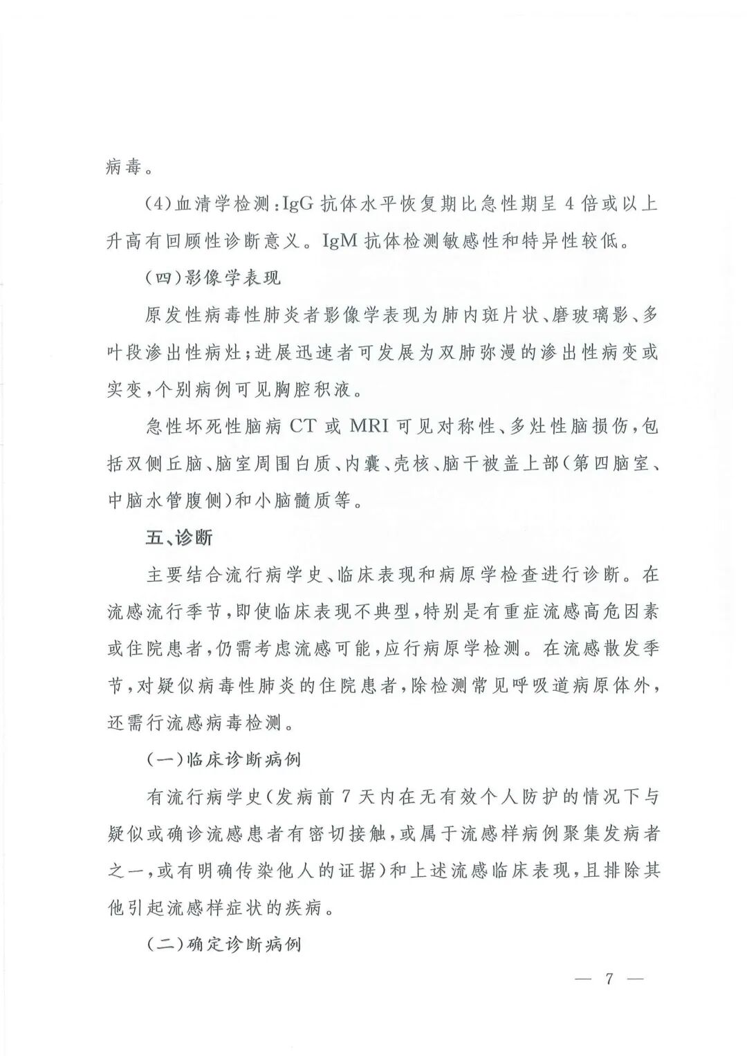 《流行性感冒诊疗方案(2020年版)》
