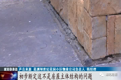 随后,记者将此事反映给关东街长山社区,在社区的协调下,东湖新技术开发商房管部门派工作人员和房屋安全第三方鉴定机构来到小区。鉴定机构工作人员表示,房屋建成后,一定范围内的沉降是允许的,但如果超出安全范围,或者不均匀沉降,就有可能威胁到房屋结构安全。当下,首先要通过数据观测,来判断开裂是否是下沉所致,以及开裂是否影响结构安全。![]()