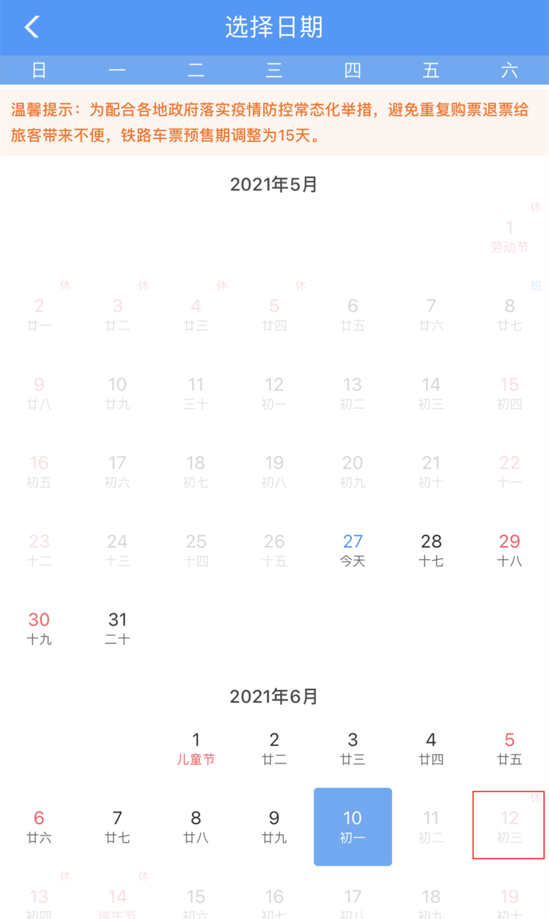 根据自己的出行计划,算好发售日期,提前看好需要的车次。为配合各地政府落实疫情防控常态化举措,避免重复购票退票给旅客带来不便,铁路车票预售期调整为15天。为了更加便民利民,铁路部门延长铁路12306网站售票服务时间,从每日的6:00至23:30,提前到每日5:00至23:30;同步12306网站和线下窗口改签规则,线上也可改签乘车当日24点前其他列车车票。如果您错过了最佳购票时机,所需车次、席别无票时,别慌,“候补购票”了解一下。端午小长假期间旅客出行高度集中,暂时没有买到所需车票的旅客可使用候补购票服务;