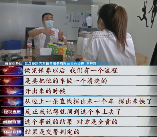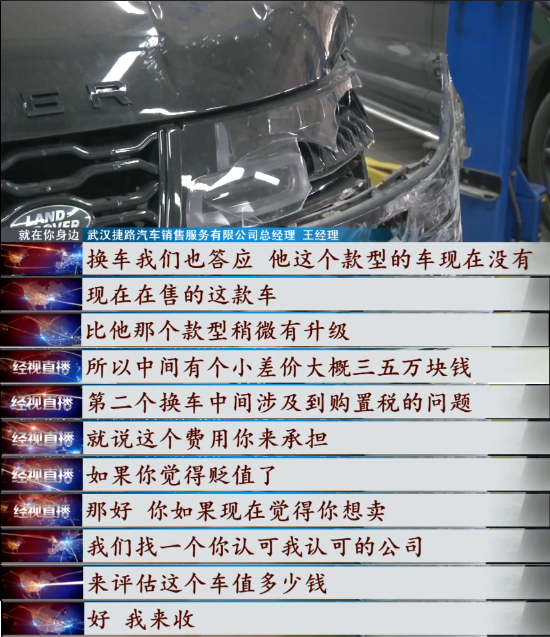 今年三月份,杨先生在武汉盘龙汽车城武汉捷路汽车销售服务有限公司购买了一辆路虎揽胜汽车,办完全部手续,总价100万左右。今年8月份,陈先生第一次将车送去4S店做保养,没想到在4S店做保养的当天,他的车就被店里工作人员开出去撞了。