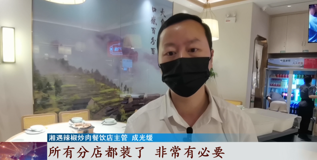 湘遇辣椒炒肉餐饮店的主管 成光缓:他们在装修前就已经预留了燃气报警器,因为一些微小的漏气,工作人员可能无法发现,有了这个报警器,就可以及时的发现,对于工作人员和顾客来说,都是一个很好的保护。