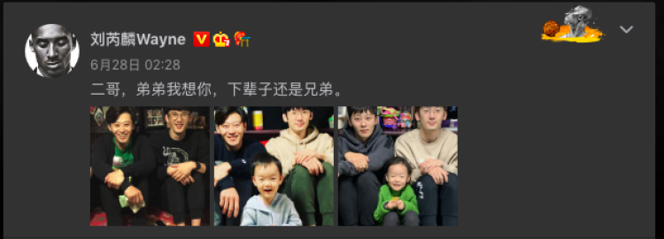 他晒出两人的同框照,并悲痛表示:“下辈子还是兄弟”。