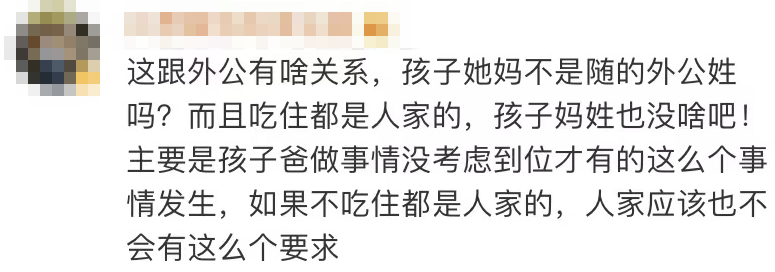 原来,老伯的女儿女婿外孙女,一家三口吃住都在自己家,外孙女不跟自己姓让老伯感觉很吃亏,而这一要求也使女儿深受困扰。