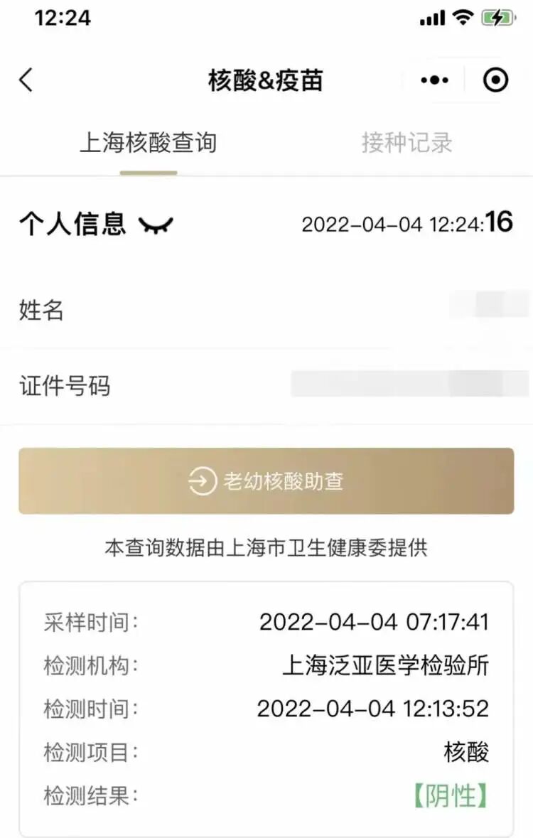今天,上海在全市范围内开展一次核酸检测。中午开始,陆续有市民发现,自己早上进行核酸检测的结果已经出来了。