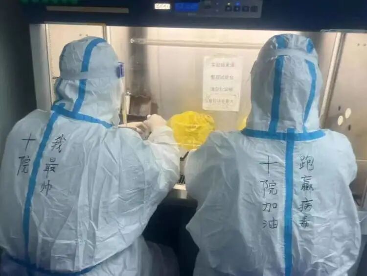 常规情况下,十院做核酸检验的共有13人,今天一共来了20多个人,除了我们平时做核酸检验的分子组,检验科其他班组也来支援了。送来的检验样本包括核酸筛查的,也有前来就诊的急诊患者、血透患者、孕产妇等。”