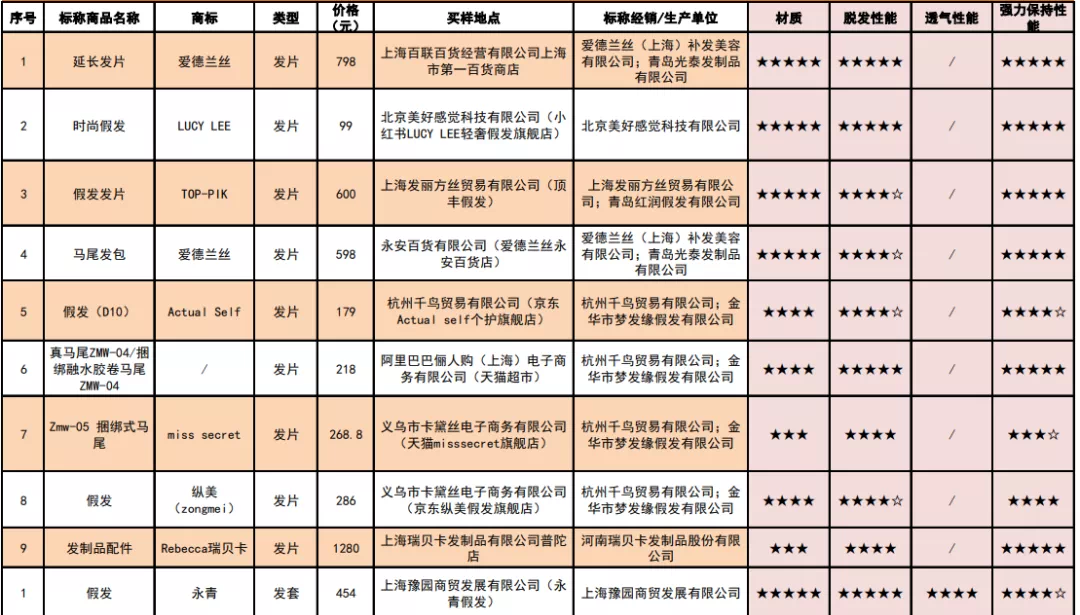 经检测,40件假发样品中,15件样品未测出上述有害物质;16件样品测出含有上述有害物质,但总含量少于100mg/kg;9件样品测出上述有害物质总含量超过100mg/kg,其中标称由许昌艾丝发制品有限公司生产的一件假发样品(标称商标:Nayoo),实测烷基酚和烷基酚聚氧乙烯醚的总含量达到448.79 mg/kg。