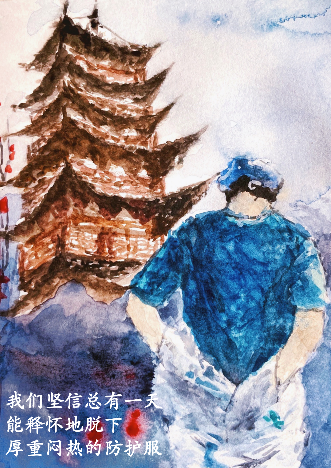 事实上,这并不是叶知秋第一次创作疫情主题水彩画,2020年疫情期间,她就根据网络上一些动人的照片画过一组水彩画。