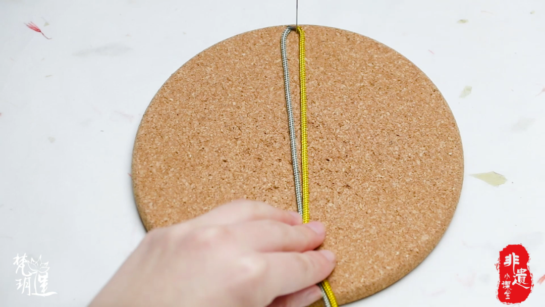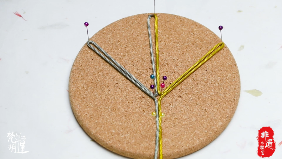 步骤一:取线,对折中心点固定在板子上